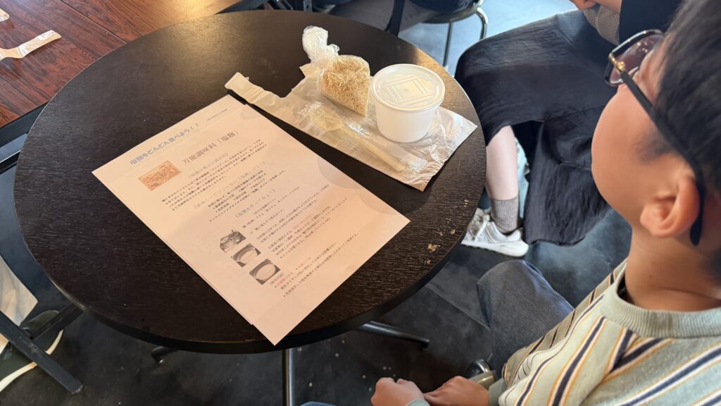 塩麹作り体験コーナーでは、キャマラード八都さんの協力により、発酵食品に関するクイズや塩麹作り体験などを通して、発酵をより身近に感じられました。