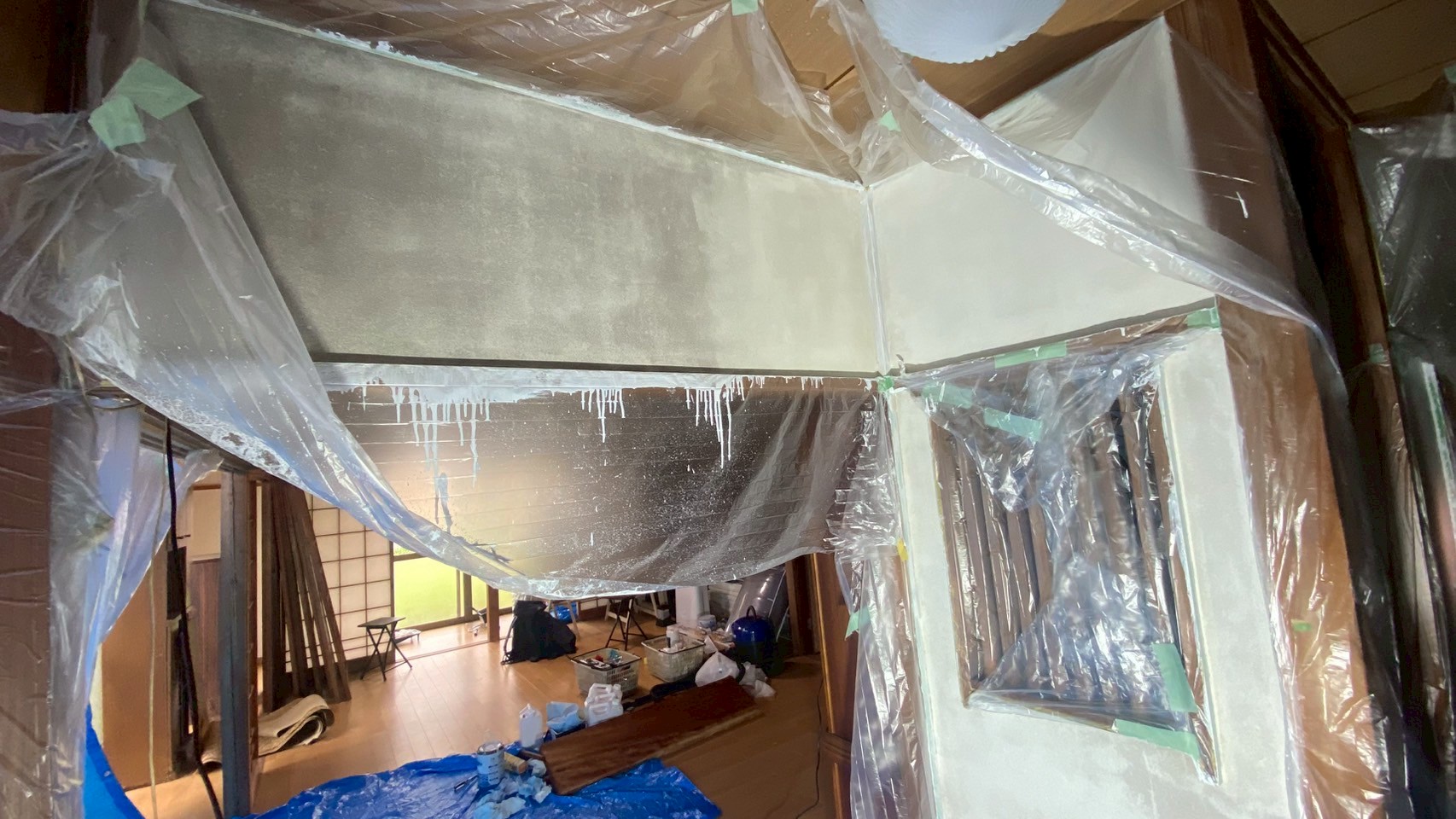 佐原に来てくれた若者が自由に滞在してもらえるような場を作るべく、旧スナック店舗と住居が一体となった建物のリフォームをしています。掃除が終わって物件を見たときに、壁を白く塗ったら清潔感も広さも演出できるんじゃないかと思い、白いペンキで砂壁を塗ってみることにしました。
